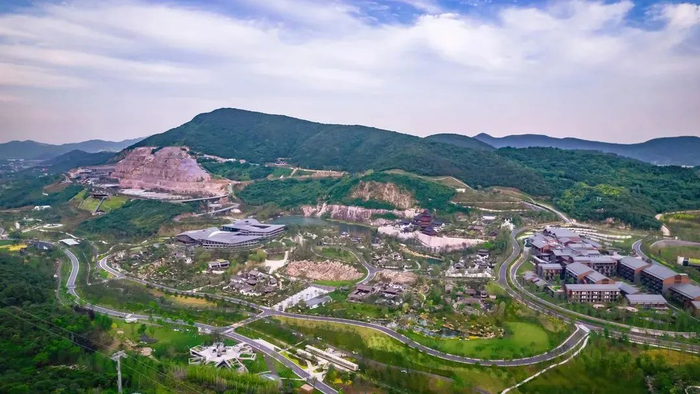 江苏省第十一届园艺博览会工程,位于南京市汤山度假区,总占地面积345公顷,原场地内孔山、泥潭、太明湖三大露天矿场,2018年被列入南京市260个关闭露采矿山名单,是国土空间综合整治与生态修复相结合的首个试点工程。