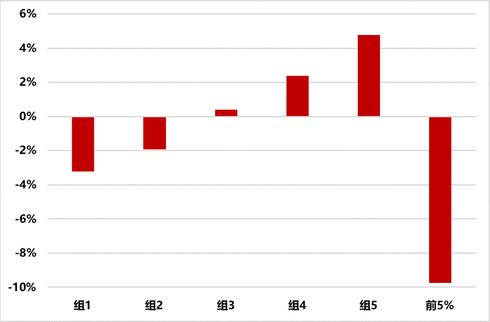 图表5:港股通各组年超额收益平均值