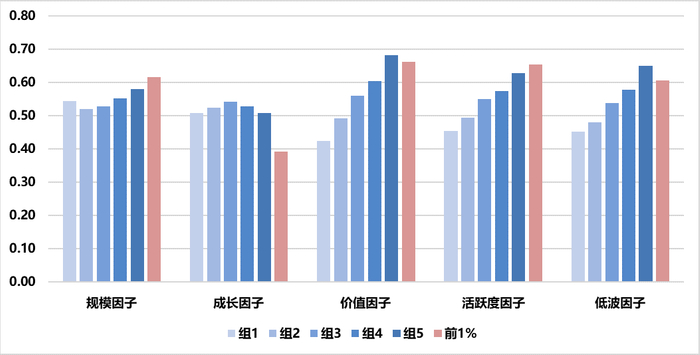 图表6:A股各组因子得分均值(20240731)