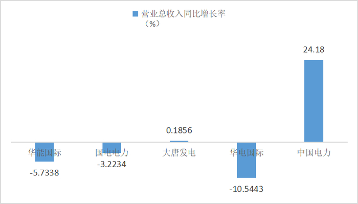 虽然营收同比下降5.73%,但华能国际是五家企业中唯一营收破千亿的公司。除华能国际外,上半年营收同比下行的还有国电电力、华电国际,降幅分别为3.22%、10.54%。上述公司表示,营收下滑,主要原因在于电量、电价同比双降。