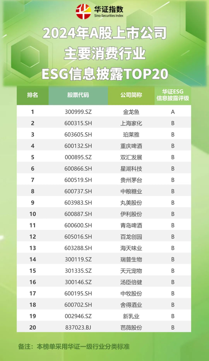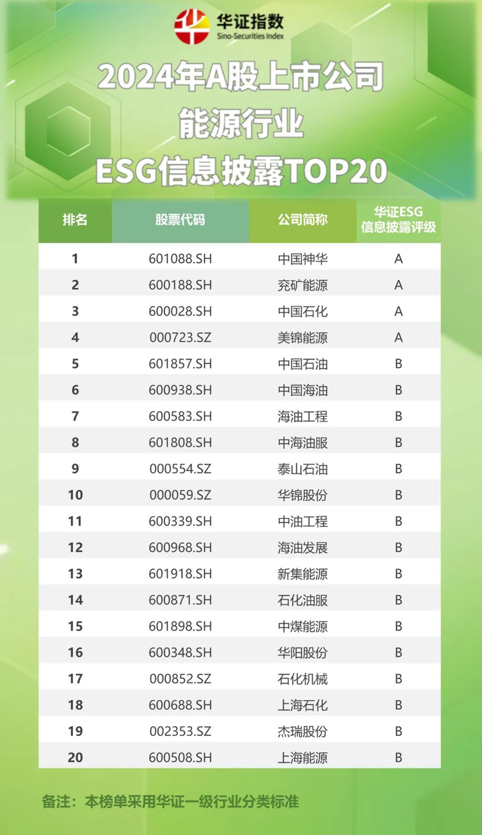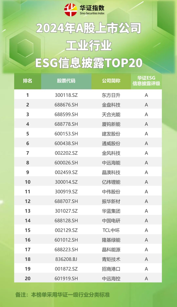 华证ESG评级 | 2024年华证A股各一级行业ESG信息披露TOP20