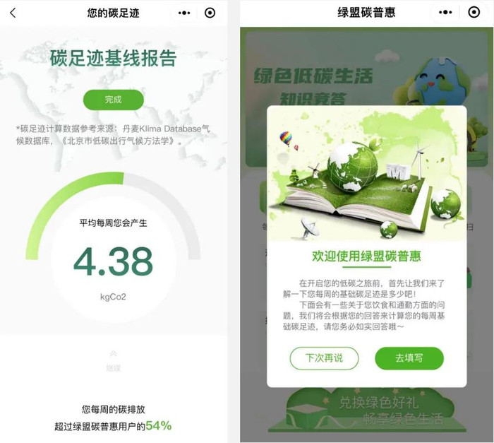 在天津,碳普惠机制同样展现出了显著成效。由天津市生态环境局指导,绿盟提供技术支撑,天津经开区支持开发的“绿盟碳普惠”微信小程序,能够通过对用户消费、饮食、出行等习惯的深入分析,为用户量身定制了个人碳排放报告,全面覆盖了日常生活中衣、食、住、行及志愿服务等方面的绿色低碳行为,形成了一本可量化、可记录、可核证的“绿色账本”。