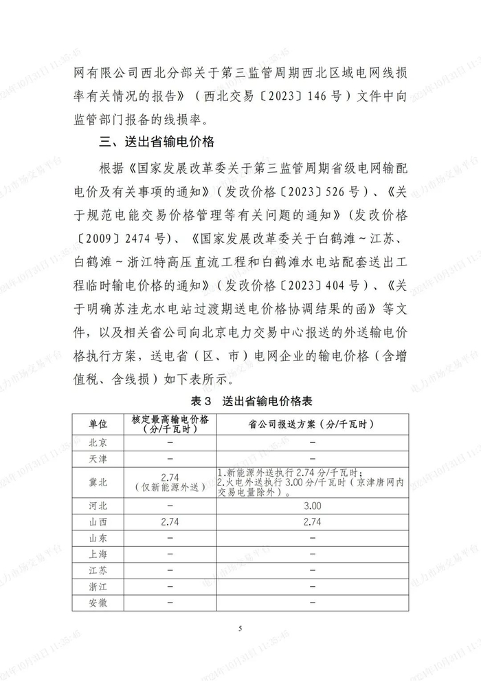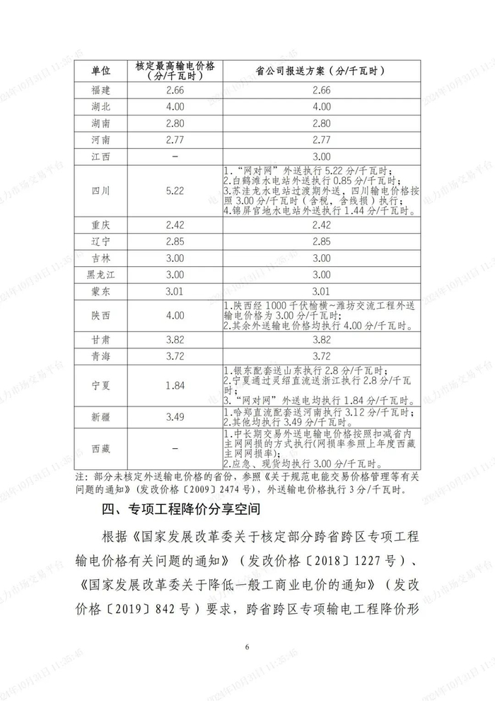 跨省跨区最新输电价格公布!