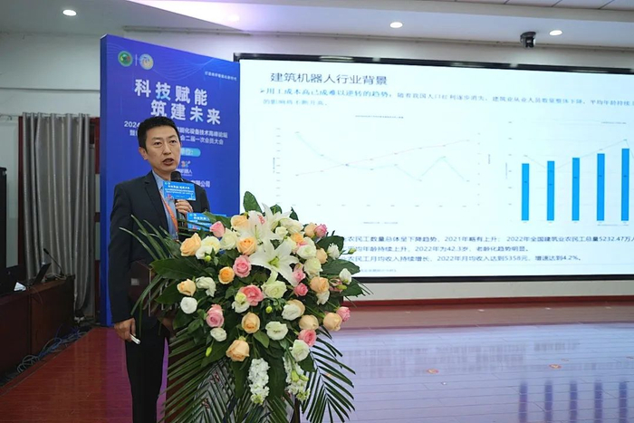 会议分享环节,博智林机器人公司副总裁刘震就建筑机器人的市场应用及行业发展进行了深入的系统阐述。他详细介绍了建筑机器人如何通过技术创新,提升施工效率,降低成本,并推动行业的可持续发展。刘震的精彩演讲获得了与会嘉宾的热烈掌声和高度评价,充分展现了博智林在行业内的专业实力。