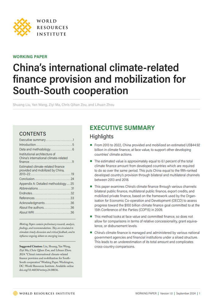 报告《南南合作框架下中国提供和动员的国际气候资金》https://www.wri.org/research/chinas-international-climate-related-finance-provision-and-mobilization-south | 图源:WRI