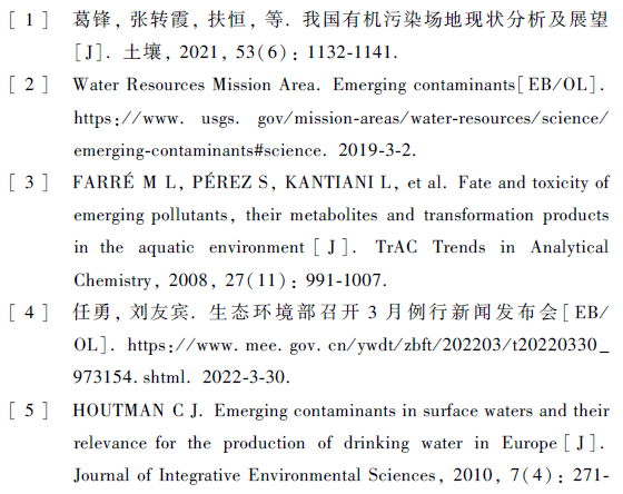 我国于2005—2013 年首次开展了全国土壤污染状况调查,并于2014 年发布了《全国土壤污染状况调查公报》,结果表明有机污染物污染工矿业废弃场地等问题较为突出。针对我国土壤污染问题,国务院于2016 年发布《土壤污染防治行动计划》,并在2019 年正式实施《中华人民共和国土壤污染防治法》。在化工行业、金属冶炼行业、石油加工等多类行业中[1] ,有机化合物作为工厂加工原料、生产过程中产生的副产品或最终产物,均对环境产生污染。污染场地中可能存在的有机污染物和重金属复合污染会极大影响土壤环境质量,甚至会威胁地下水安全,增加了治理和修复的难度和成本。一些欧美国家对于土壤污染的危害早有研究,积极展开修复工作,在场地修复技术和应用方面积攒了丰富经验。我国在发达国家的启发下,对污染场地的修复逐渐重视并开展了系列调查研究。调查发现污染场地中,新兴污染物和新型污染物(统称为新污染物)引起大众广泛关注。但人们对新污染物的了解甚少,治理手段方面还存在巨大挑战,关于污染场地中新污染物的认识还需深入研究。