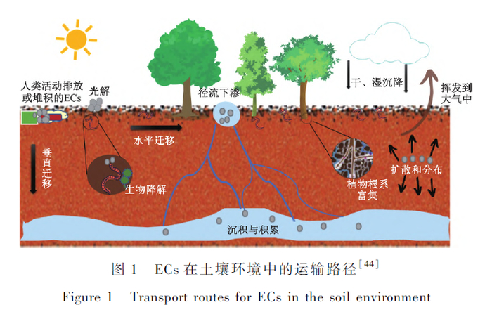 综上所述,当ECs 进入到土壤后会受到多因素影响,在土壤中的迁移转化途径复杂多变。因此为确保人类与自然和谐共建友好的生态环境,应该深入研究ECs 在土壤中的迁移转化机制,探究植物组织对ECs 的吸附积累效应、土壤动物对ECs 的影响等,为修复ECs 土壤提供新思路。