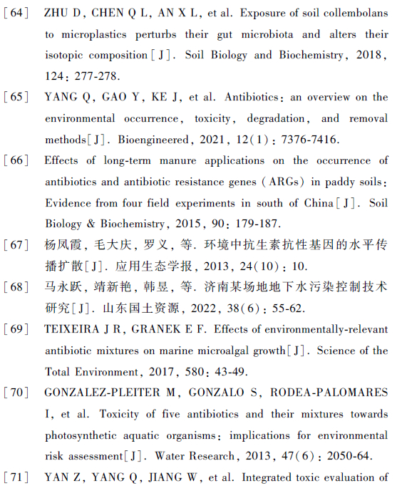 抗生素是由微生物产生的天然产品或其半合成的衍生物,能够杀灭或抑制其他微生物并用于治疗由敏感微生物(常为细菌或真菌)所导致的感染[12] 。我国是抗生素生产和使用大国,据报道,我国的抗生素滥用比例达到80%。由于抗生素并不能被生物体完全利用和吸收,因此60% ~90%的抗生素短暂停留于生物体后,以原抗生素形态或代谢中间体的形式随排泄物排出[11] 。目前,在我国河流中,不同程度地检出了磺胺类(SAs)、喹诺酮类(QNs)、大环内酯类(MLs)和四环素类(TCs) 抗生素[10] ,并且我国土壤中TCs和QNs 的检出频率和检出浓度都较高。有研究表明,在我国农业土壤环境中所检测到四环素类土霉素、金霉素和四环素含量分别为0~8400,0~5520,0~2450 μg/ kg[14] 。由于抗生素半衰期较长,其在环境中的累积逐渐增多,给生态系统带来风险。例如,抗生素衍生物———抗生素抗性基因(antibiotic resistancegenes, ARGs)也是受关注度较高的新污染物。ARGs是细菌为抵抗抗生素进化出来的一种基因。抗生素长期存在于自然环境中,细菌为维持自身生存进化出耐药性[13,15] 。近年来的研究表明,这类物质具有足够的持久性和移动性,可以在水、土壤、大气等环境介质中迁移转化。各种携带ARGs 介质相互联系,在人类-自然系统之间形成一个循环,使ARGs 不断传播、扩散和积累[16,17] ,最终会对环境、人类和动物健康造成严重威胁。