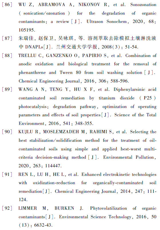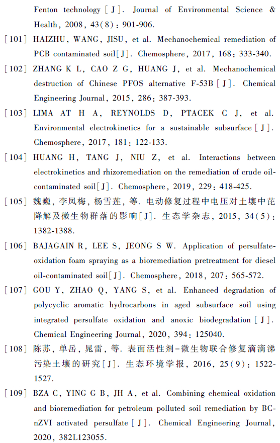 物理-化学-生物修复技术:由于原始土壤环境并不一定满足生物修复的要求,物理化学方法可以显著改善环境,继而联合生物修复以达到更好的修复效果[96] 。