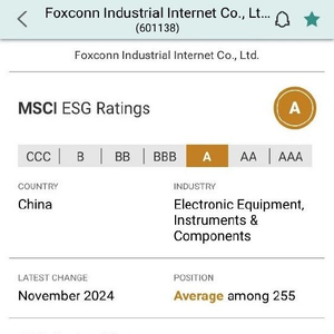 ESG实践获进一步认可,工业富联MSCI ESG评级跃升至A级