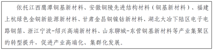 5.优化产业布局。落实国家区域重大战略、区域协调发展战略和主体功能区战略,统筹考虑资源、能源、环境、运输等生产要素,引导产能向具有资源能源优势及环境承载力的地区有序转移,推动低效产能退出,大气污染防治重点区域不再新增铜冶炼产能。鼓励铜冶炼和化工、建材等产业耦合发展,实现副产硫等就地转化。支持培育铜精深加工产业先进制造业集群。(工业和信息化部、国家发展改革委、生态环境部按职责分工负责)