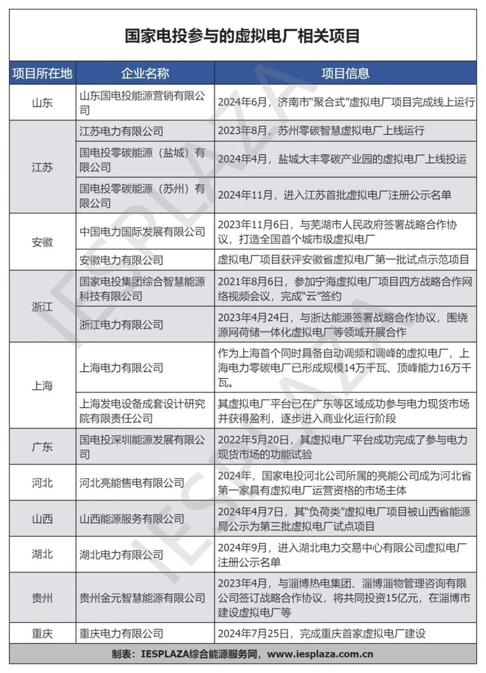 江苏:2023年8月,国家电投集团江苏电力有限公司参与投建的江苏苏州零碳智慧虚拟电厂上线运行;2024年4月29日,国电投零碳能源(盐城)有限公司投建的江苏盐城市首个虚拟电厂项目正式启动试运行;2024年11月14日,国电投零碳能源(苏州)有限公司进入江苏首批虚拟电厂注册公示目录;