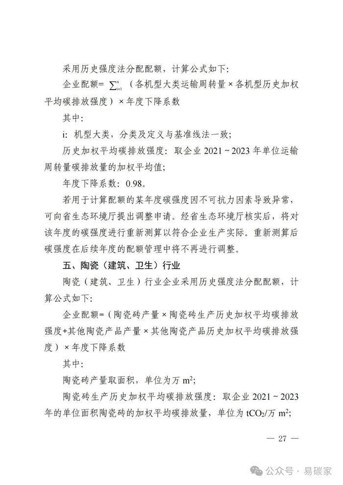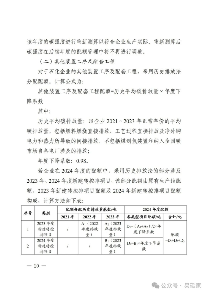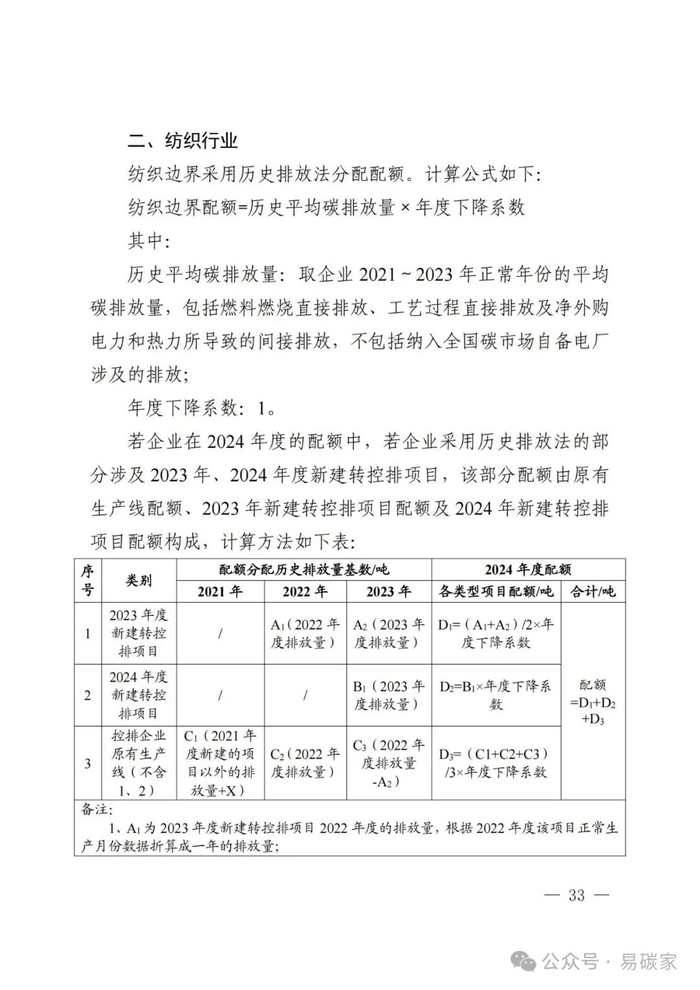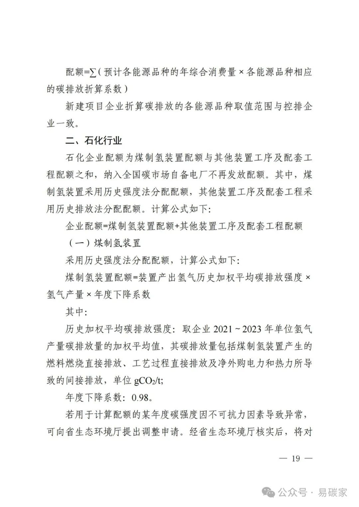 石化行业企业(煤制氢装置除外),纺织(自愿纳入)行业、公共建筑(自愿纳入)企业使用历史排放法分配配额。
