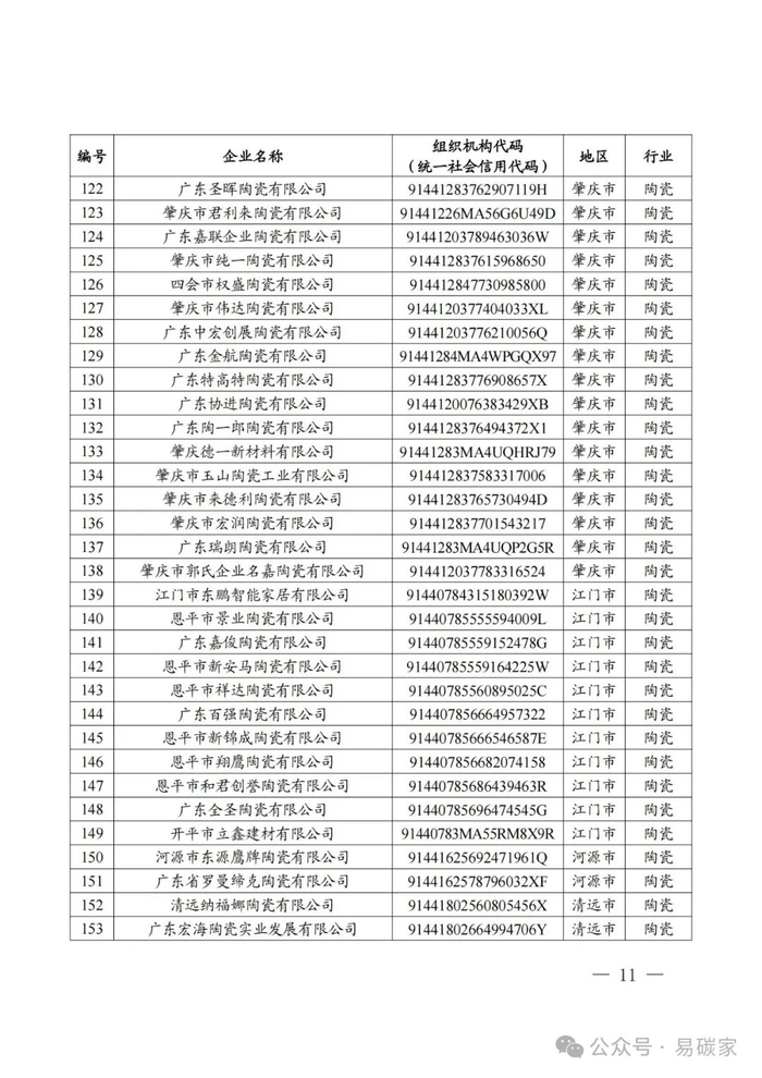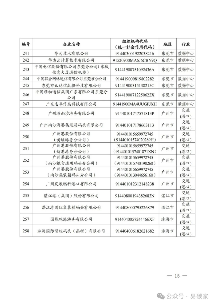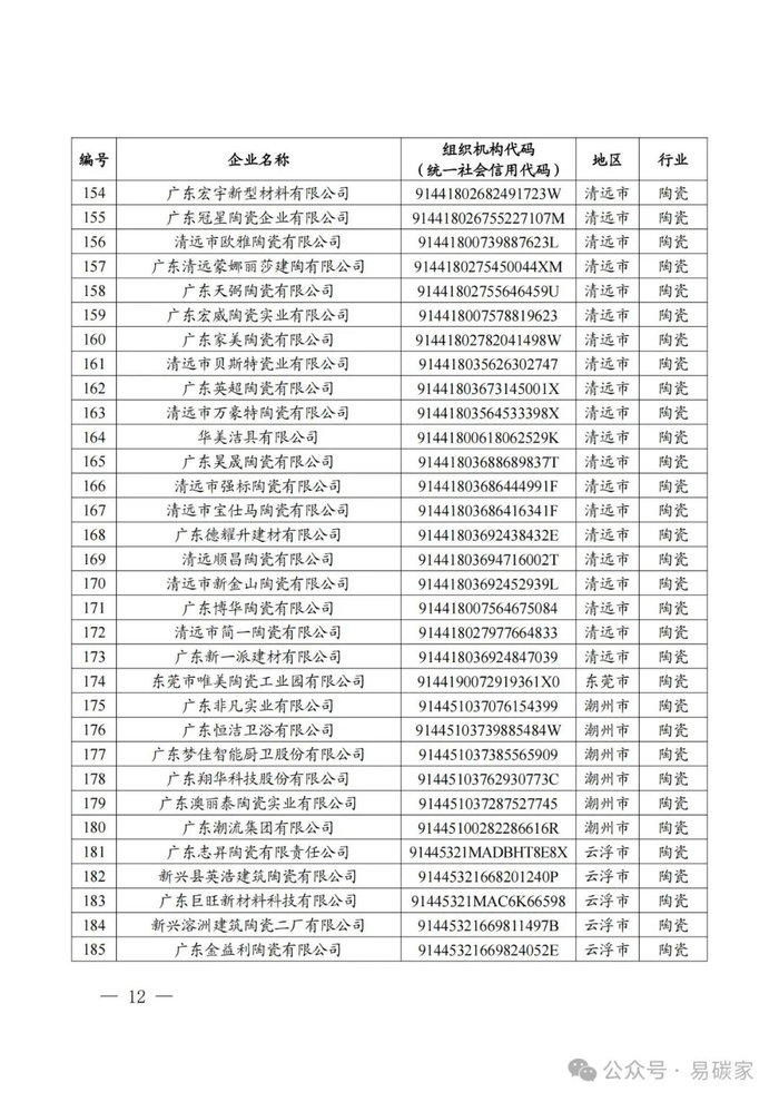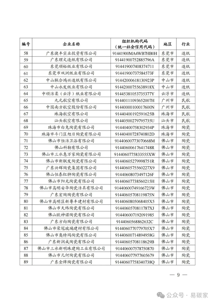 本省行政区域内(深圳市除外,下同)石化、造纸、民航、陶瓷(建筑、卫生)和交通(港口)等行业年排放1万吨二氧化碳(或年综合能源消费量5000吨标准煤)及以上的企业,数据中心行业年排放1万吨二氧化碳(或运行机架数达到1000标准机架)及以上的企业,共258家(附件1)。