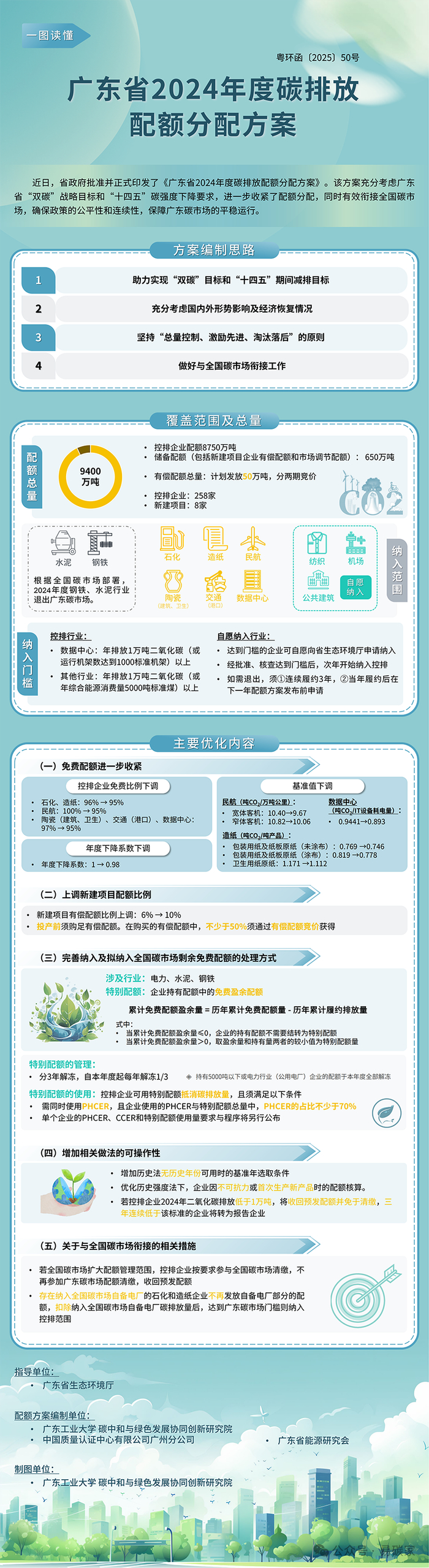 碳配额总量为9400万吨!关于印发《广东省2024 年度碳排放配额分配方案》的通知