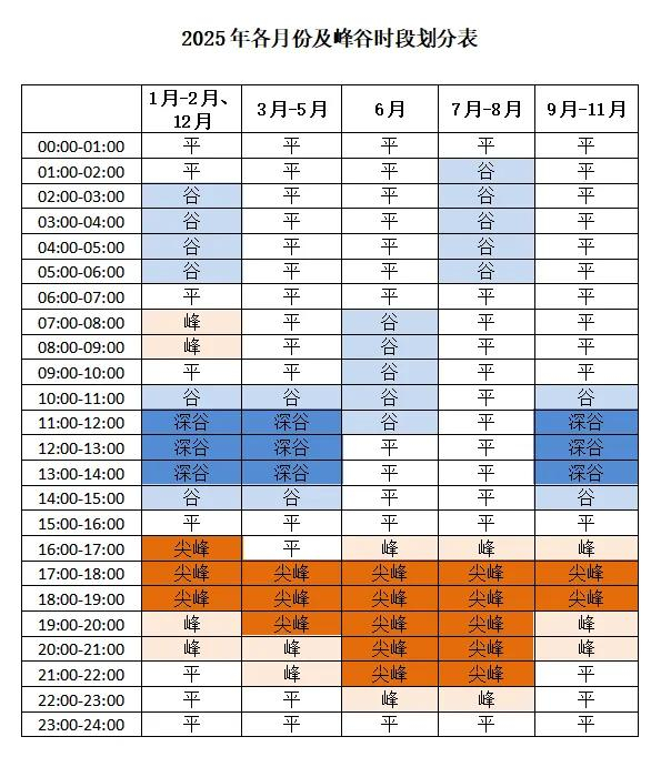 这五段主要为:平、谷、峰、深谷和尖峰,这五个时段分布在不同月份的不同时刻。