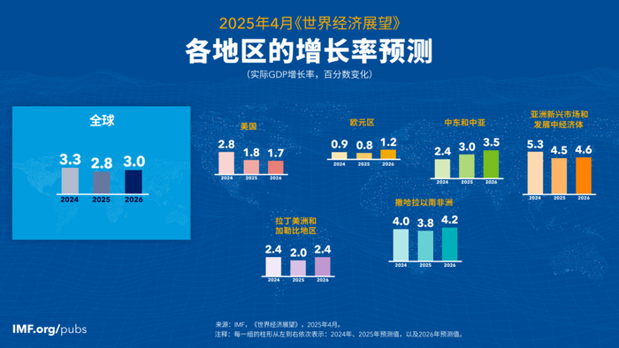 ©国际货币基金组织|2025年4月《世界经济展望》各地区的增长率预测