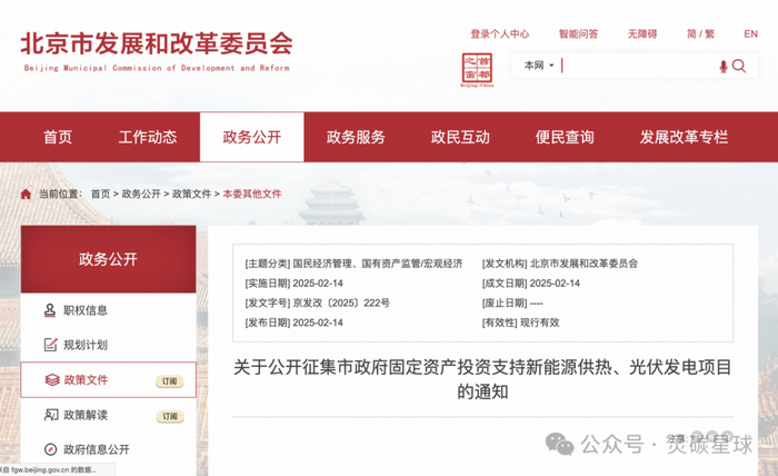 关于公开征集市政府固定资产投资支持新能源供热、光伏发电项目的通知