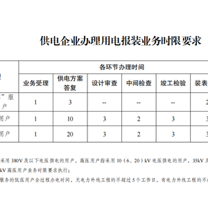 (二)持续深化“三省”服务。推广主动办电服务。供电企业通过政务平台等渠道动态获取项目用电需求,超前对接用户,主动提供政策咨询、办电指导,适度超前建设配套电网工程,及时保障用户接电需求。推行快捷办电服务。供电企业全面落实办电时限要求(详见附件),对于列为国家和省级重大项目的,应开辟办电绿色通道,结合实际进一步精简办电申请资料,优化办电服务流程,全力满足项目用电需求。实施精准办电服务。各省级能源(电力)主管部门指导供电企业明确用电报装容量标准并向社会公开,服务用户结合实际用电需求合理确定申请容量。鼓励供电企业通过与用户签订契约协议等方式提前约定接电时间,为用户提供可预期的接电服务。