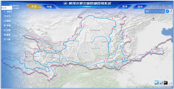 建成全河统一的地理信息服务平台黄河“一张图”,初步建成“2+N”水利业务应用体系和综合办公政务应用体系。水旱灾害防御方面,建设黄河水旱灾害防御四预系统(见下图),强化预报调度业务协同,在防洪防凌会商、调水调沙等实战中发挥重要作用。水资源管理方面,建设水资源管理与节约保护应用系统,完成流域范围6600余个地表水一级取水口上图,实现对流域127个国家重点地表水水质站的动态掌握,为保障流域省(自治区)用水提供了有力支撑。水行政执法与河湖管理方面,建成水政执法遥感应用系统、执法巡查监控系统和水事违法案件处置系统,实现“发现—跟踪—处理”全过程闭环管理,形成“天上查、地上跟、网上办”的信息化处理机制。工程建设与运行管理方面,开展水库矩阵平台和三维数字化场景构建。政务管理方面,完成黄委机关及委属事业单位电子政务国产化改造,构建黄委国产化环境下统一的政务办公平台。同时,在防洪规划、人事考核、水利监督、安全生产、水文化建设等方面也建设了相应的应用系统,提供了有效的信息化支撑。推进人工智能大模型应用,建立政务、防汛、水库矩阵管理检索增强(RAG)知识库,初步建成黄委统一水利大模型应用服务门户,实现黄委办公及业务问题智能检索、交互问答、方案建议等。