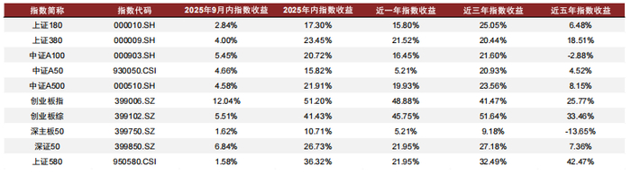 从总体的收益表现来看,截至2025年9月30日,178只存续超过了一个月的被动型基金,近一月共有160只产品取得正收益,共有71只产品今年表现超过同期沪深300指数。