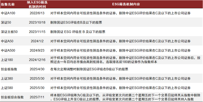 国内应用ESG筛选的规模指数