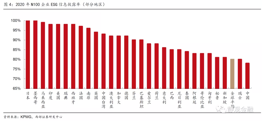欧盟:2014年修订《非财务报告指令》要求员工数超过500人的大型企业必须披露ESG信息,成员国应于2016年12月前开始遵守,由此欧盟国家ESG信息披露开始快速发展。2021年4月欧盟通过一项提案,扩大发布报告的对象范围至所有的大型企业和上市公司。