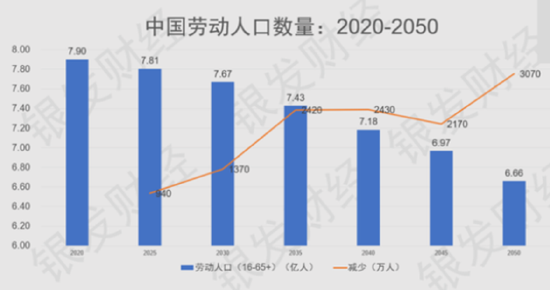 根据联合国人口报告的数据,中国20-64岁人口(承担社会劳动的主力年龄段)在2015年达到顶点9.34亿后,便进入长期下降的态势。而且在2030年之后下降速度加快,至2050年时仅为7.7亿人,比2015年减少1.64亿人。
