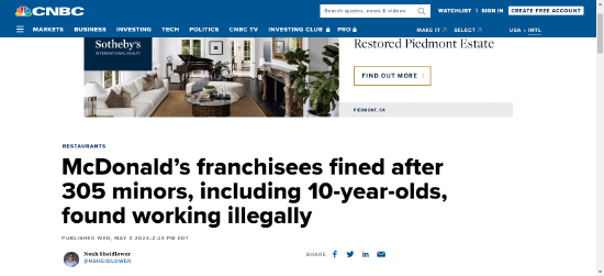 童工问题触目惊心!麦当劳被曝非法雇佣超300名儿童被罚款