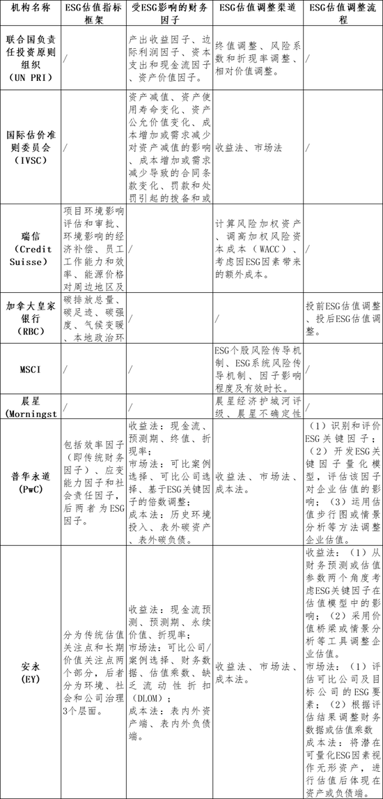 表 7 部分ESG因素在企业估值中应用的国际实践