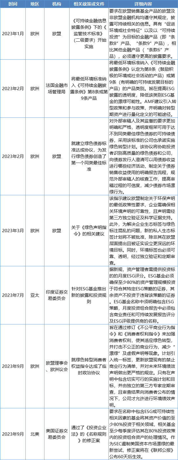 表1:2023年境外防范“漂绿”相关政策/法规