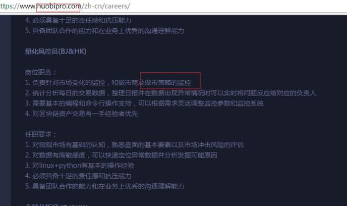 在去年受到监管后,火币网于2017年10月31日关闭人民币交易业务。但是最近,一个现象引起了编者的注意,在“火币网”的招募启事中,我们见到了这样一行: