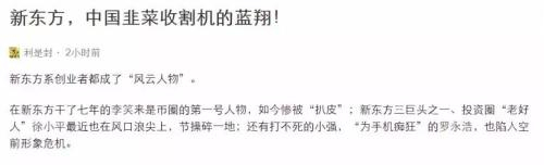“由于李笑来言论事件,由于李笑来曾经是新东方的老师(8年前),现在不少网文把新东方和币圈联系起来,出现了一系列标题党:“揭秘币圈史诗级幕后黑手——新东方”,“新东方,中国韭菜收割机的蓝翔!”