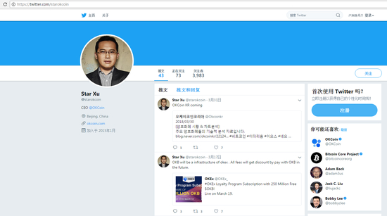 据二者官网和推特资料显示,徐明星为OKCoin创始人,OKEx官网上披露的管理团队信息中未见”徐明星“本人职务和信息,OKEx作为在香港注册的私人股份制公司,并未公布其股权结构及更多股东信息。