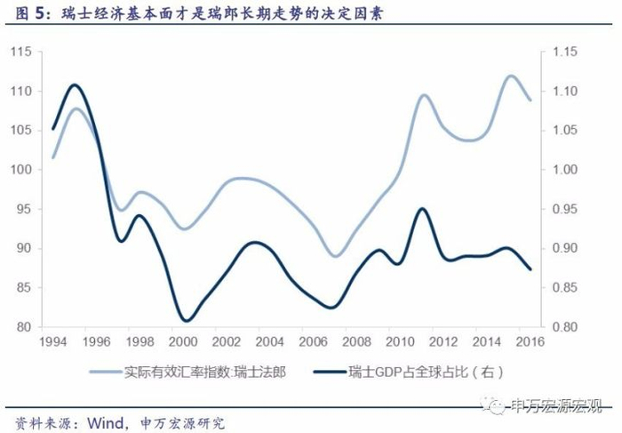 虽然瑞郎也有一定的融资货币特征,但上文已指出这并非是其成为避险货币的主要原因。作为近现代最著名的永久中立国,瑞士成熟稳定的政治和地缘环境,以及高度发达和完善的金融体系才是瑞郎成为避险货币的决定因素。瑞士银行体系完善且严格的保密机制,使之成为“财产安全”的象征,进而催生出投资者对瑞郎的避险需求。