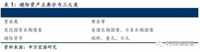 避险资产通常指在受到政治、战争、市场波动等重大外部冲击时价格能够保持坚挺,或者在市场风险偏好突然下降时受到市场追捧的资产,即面临不确定风险时具有“负风险溢价”(negative risk premium)的特征。