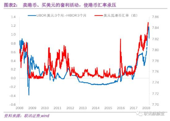 卖港币、买美元的套利活动会继续存在。由于联系汇率制的安排,只有当触碰到7.85:1的弱方兑换保证时,金管局才会干预,其它汇率水平时通常不会直接参与市场,套利活动会使港币兑美元运行在偏弱的区间。
