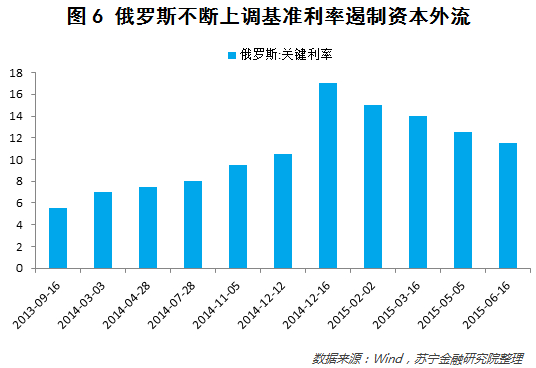原油价格暴跌引发俄罗斯卢布贬值压力,资金大幅外流——2014年3季度,俄罗斯资本外流开始变得严重,当季大约有100亿美元资金外流,到了4季度资本外流金额达到了创纪录的300亿美元。