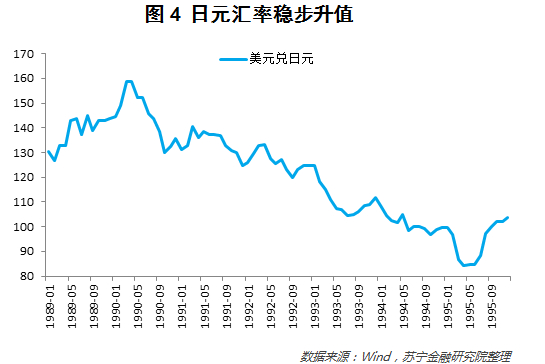 为平抑日元升值压力,日本央行采取宽松货币政策,积累了资产价格泡沫。