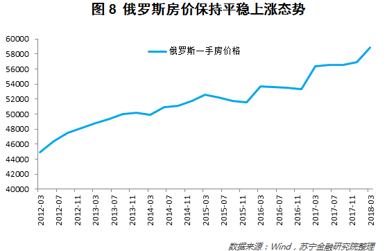 但是,汇率贬值释放了经济的压力,卢布充分贬值后,俄罗斯央行顺势下调了基准利率,利率上涨对房地产市场的冲击得到迅速缓解,资本外流规模也出现下降。最终,俄罗斯房价没有受到太大的负面影响,基本处于一个上升趋势中(参见图8)。