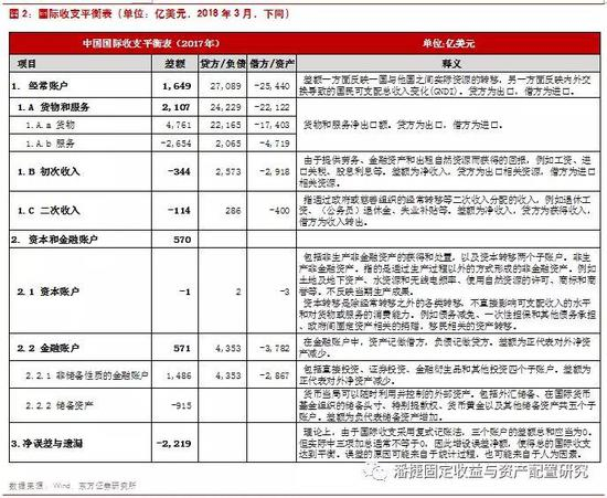由此我们可以得到,储备资产余额增加,可以分解成经常项目的流入+非储备性质的金融项目流入+误差与遗漏项目流入。国际收支平衡表各分项释义如下表所示,后文我们将选择主要分项进行解释: