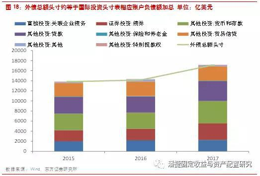 由于外管局2015年起按照以上指南统计外债总额头寸,我们加总了15年以来国际投资头寸表的相关科目,与历年外债总额头寸基本吻合。近三年我国外债总额头寸中,其他投资项占比最高,主要包括货币和存款、贷款以及贸易信贷。