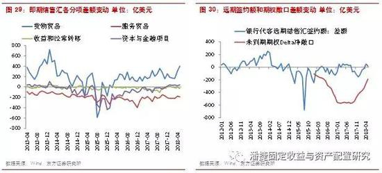 银行代客结售汇、远期结售汇以及外汇期权均面向非银行机构和个人,反映市场预期。其中,即期结售汇代表了当期机构和个人的结售汇规模。例如居民购回,则银行售汇规模上升;企业贸易收入结汇,则银行结汇规模上升。在人民币贬值预期较强的时期,即期结售汇差额通常会明显下降。