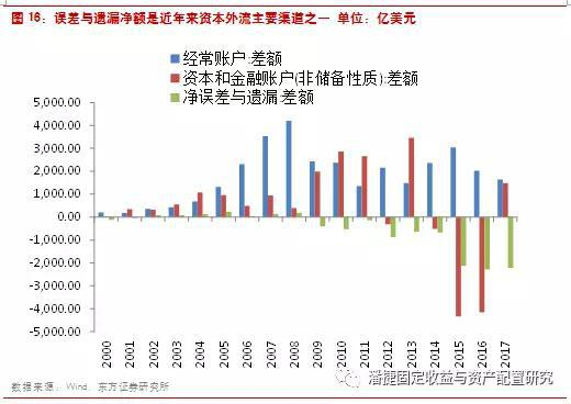15年以来,我国误差与遗漏项净流入规模快速增加,理论上来讲进出口项目的误差不太可能在短期内有明显变化,因此,近年来误差与遗漏项的增长很大程度上来源于官方记录之外的资本流出。