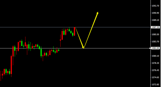 1581~1582区间买入,止损3美元,目标1585、1588、1591。