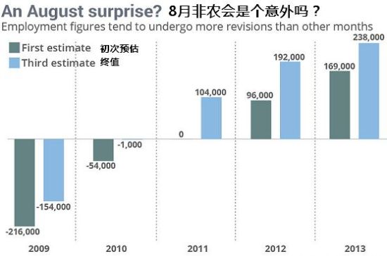 8月是尤其多变的月份,由于受访家庭数量比其他任何一个月份都要少,过去5年来,数据初估和最终修正值平均有7.7万个岗位的偏差。