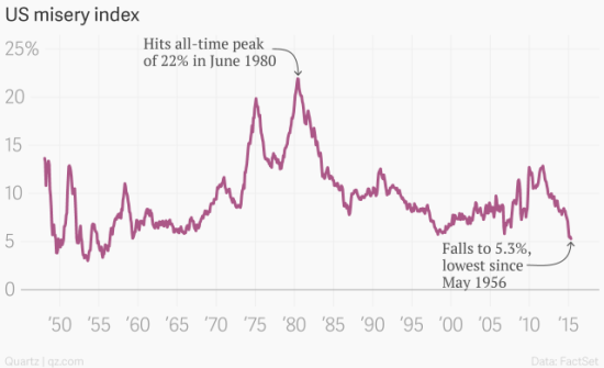 美国“悲惨指数”降至59年最低
