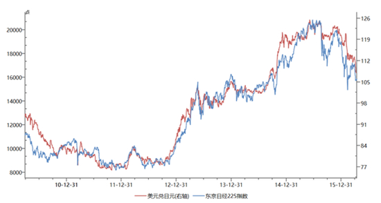 图1 美、日实际利率之差与美元兑日元高度相关