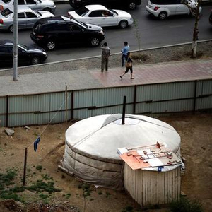 图为2013年资料图片,显示乌兰巴托市中心一条繁忙街道旁的蒙古包。 REUTERS/Carlos Barria/File Photo