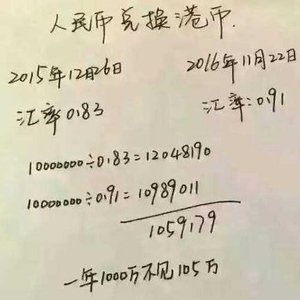 是的!你没看错,在不到一年的时间内,100万人民币在香港的购买力下降了近10%!10.59万港币再兑换回人民币就是9.64万,也就是说,100万一年少了10万块!